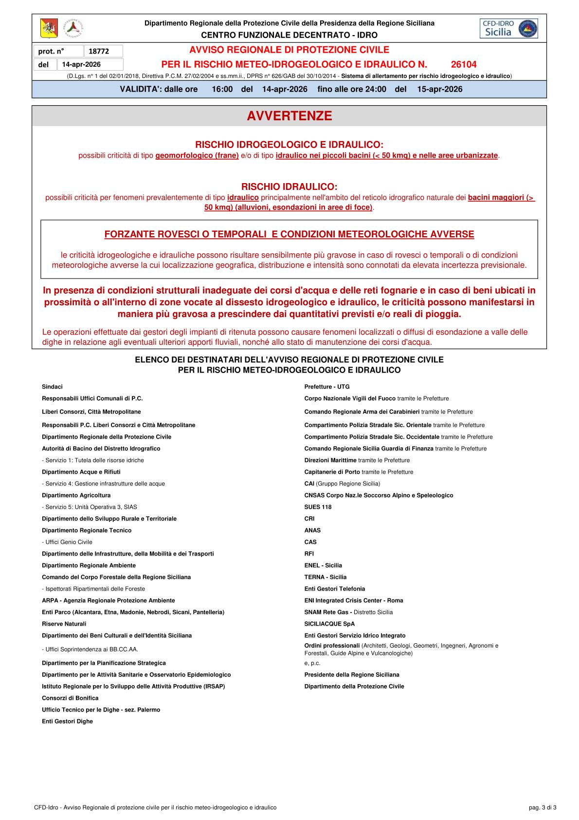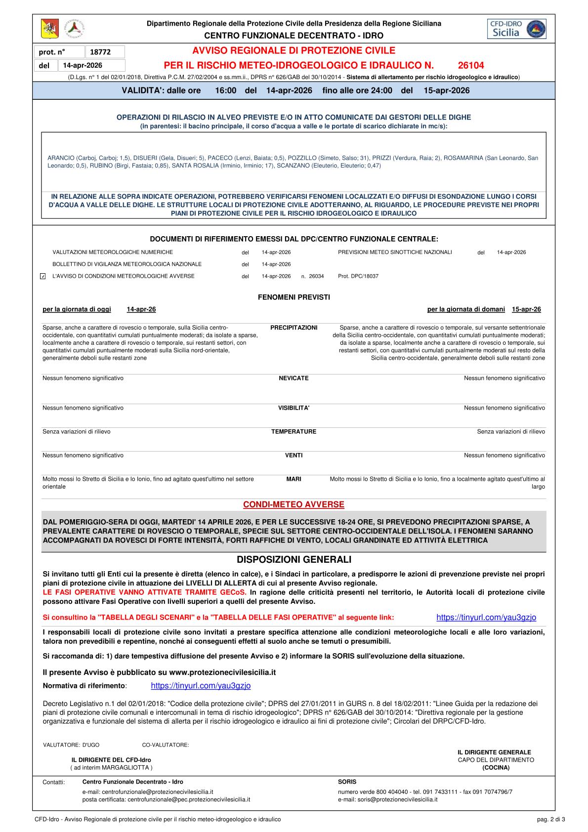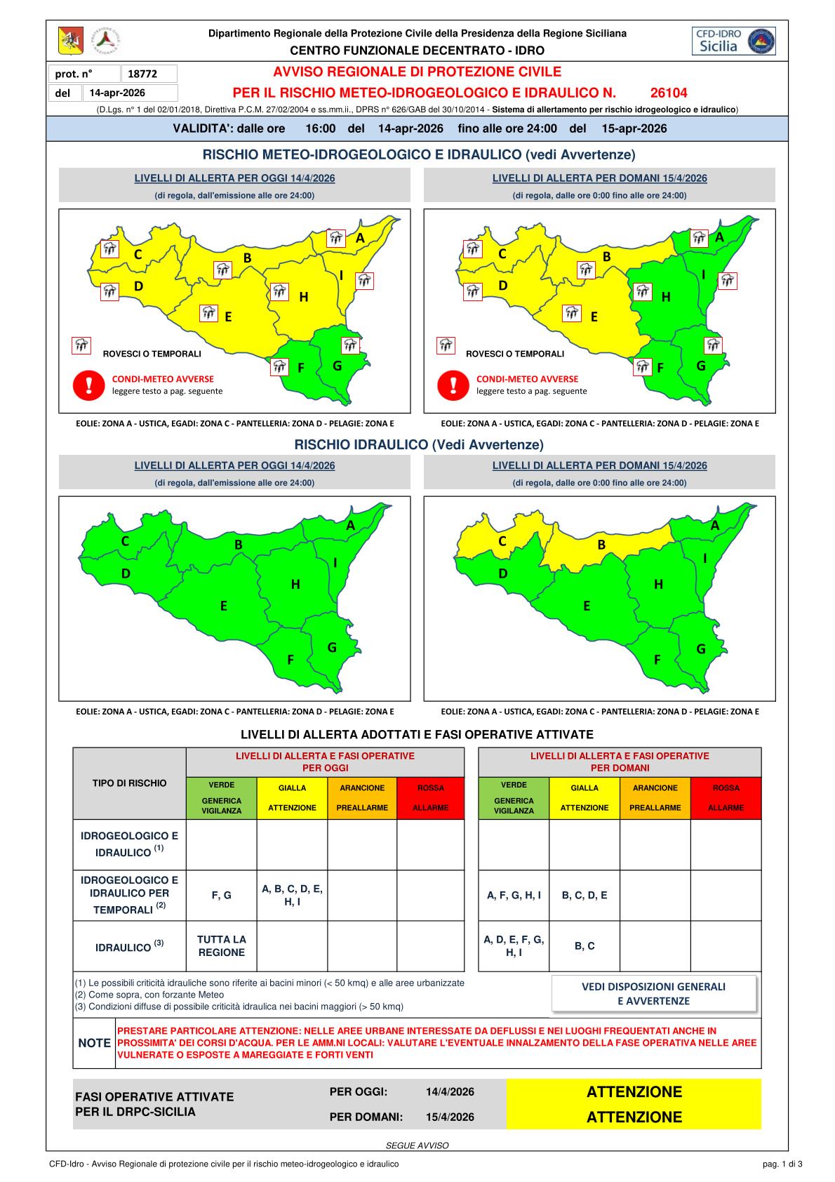 N. 26104 del 14/04/2026 con validità dalle ore 16:00 del 14/04/2026 fino alle ore 24:00 del 15/04/2026