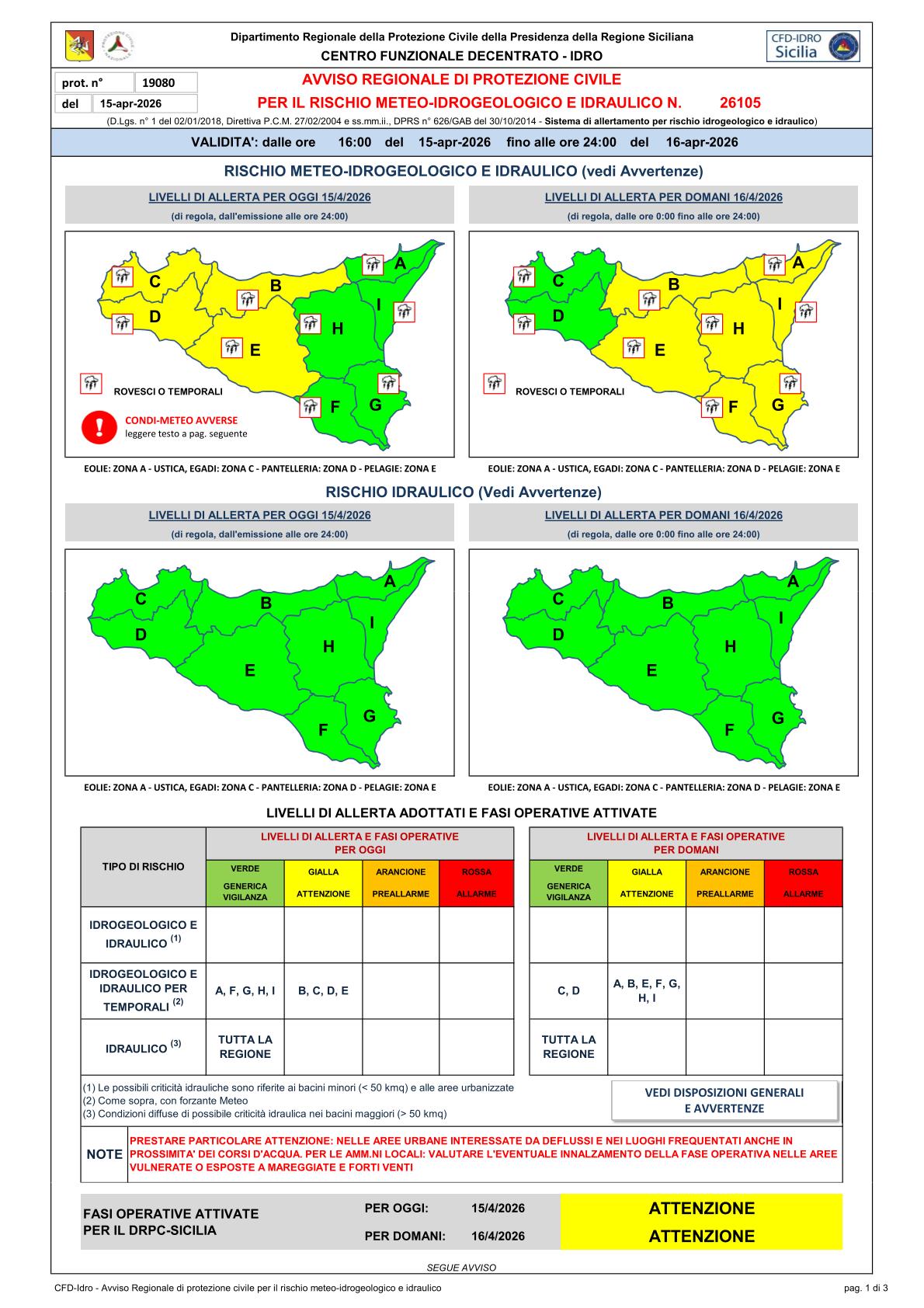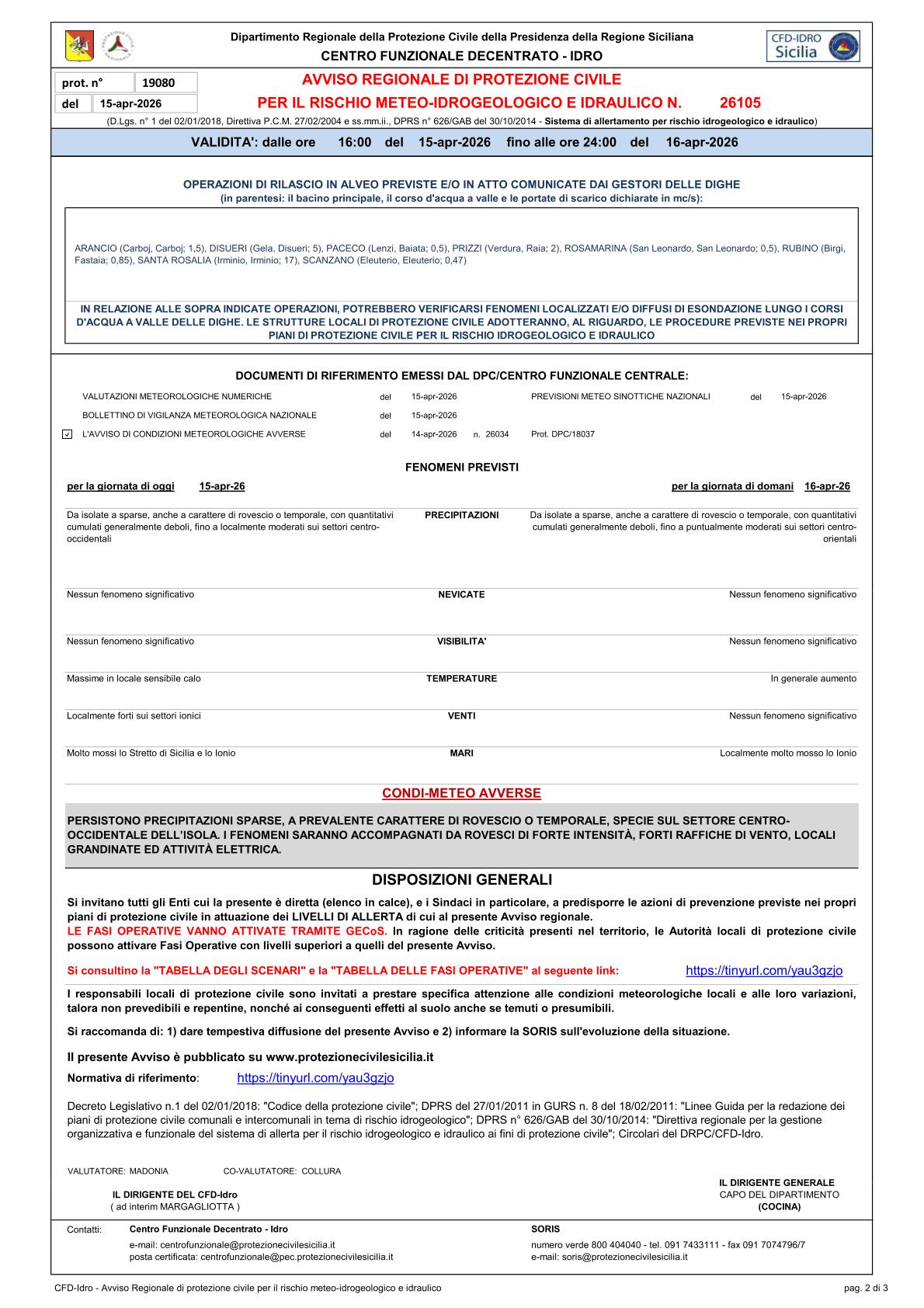 N. 26105 del 15/04/2026 con validità dalle ore 16:00 del 15/04/2026 fino alle ore 24:00 del 16/04/2026